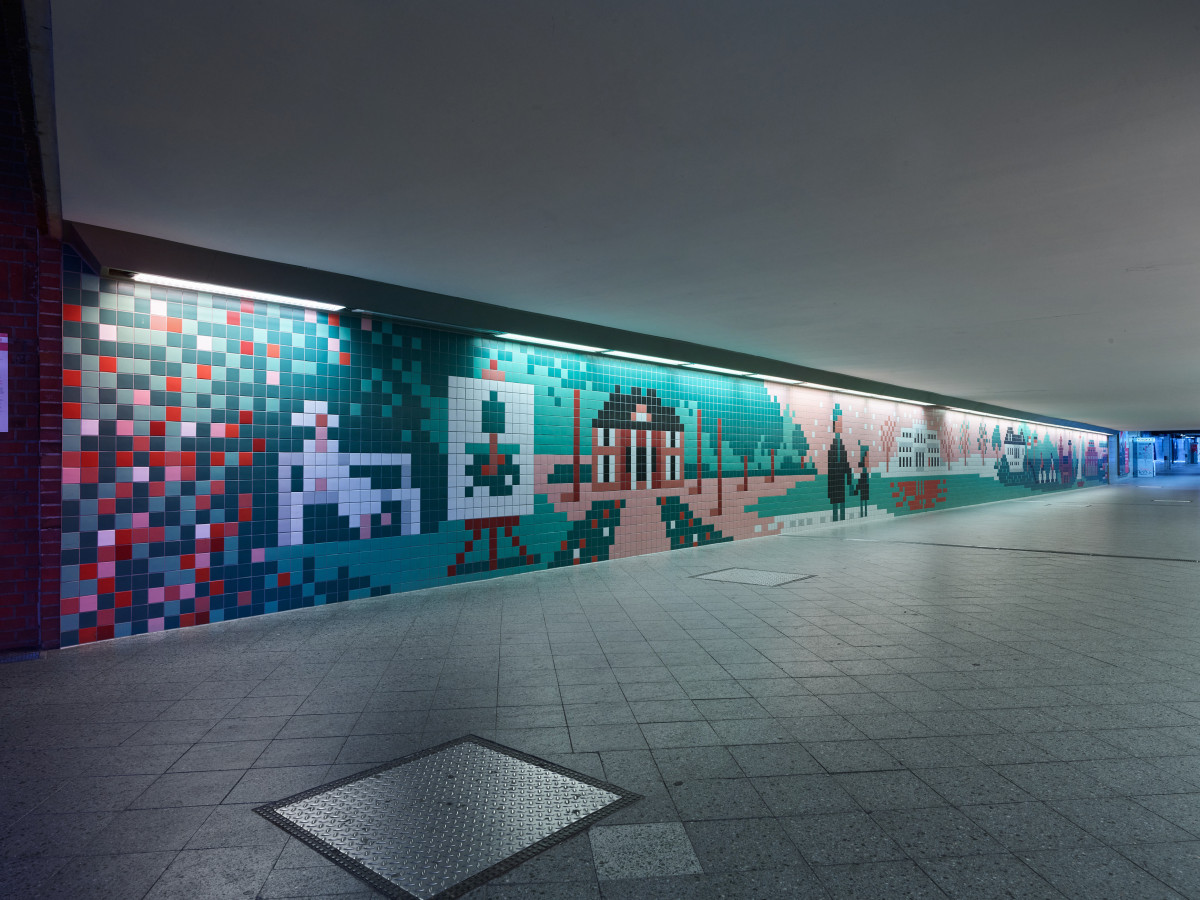 'Wannsee' is an 80m long – permanent – site-specific art commission curated by urKultur for Deutsche Bahn at Wannsee Station, Berlin. The artwork by Germany's leading illustrator Christoph Niemann represents his first major public work. The work presents well known and celebrated features of Wannsee - the lake, bathers, the Liebermann Villa, but also its darker side, the House of the Wannsee Conference. Die Zeit Magazine dedicated a 6 page feature to this commission, the link to which can be found below, together with selected articles, and a lovely short film by the artist.