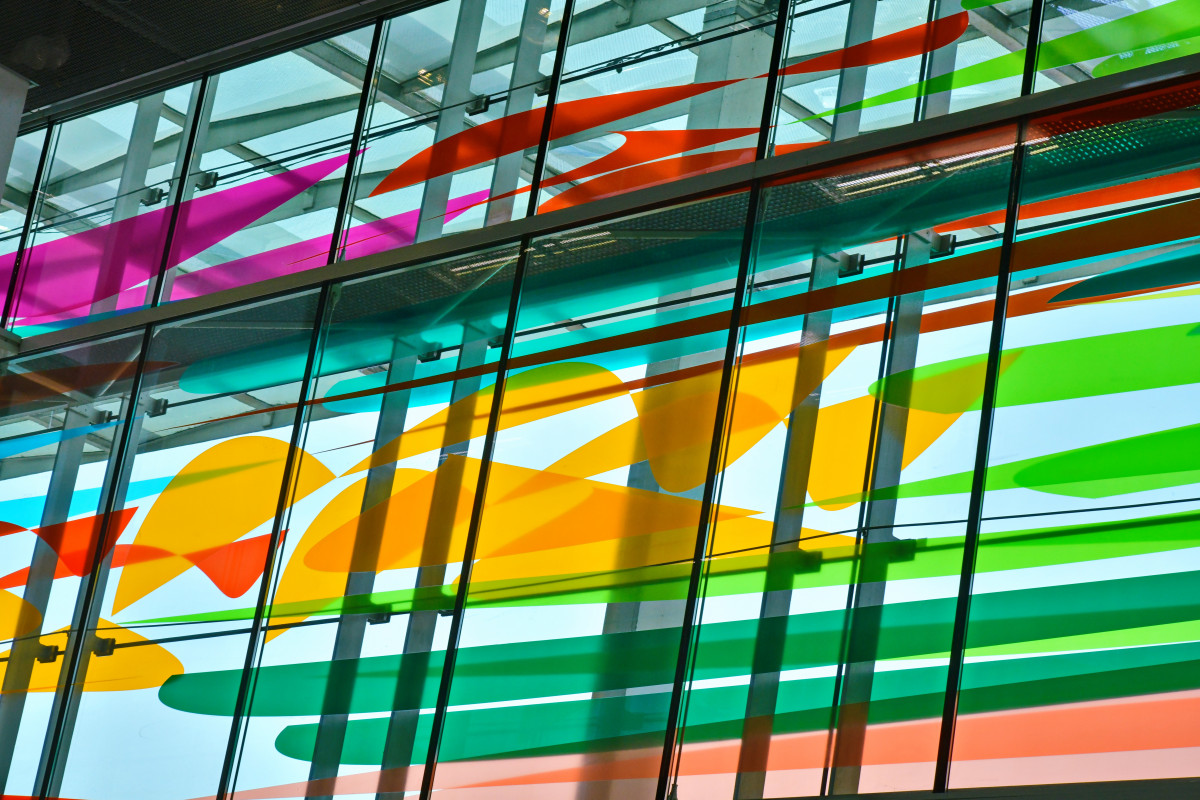 A large-scale art commission by Dolores Zinny and Juan Maidagan has been unveiled at Berlin Ostbahnhof. The intervention on the two sides of the facade is designed to transform the entrance and entrance hall. "The fascinating interplay of colors and superimpositions of light invites all Berliners and guests to marvel. The artwork turns the modern but rather cool glass façade of Berlin East Station into a canvas for the imagination and the station into a gallery," according to Monika Jung, Station Manager of Berlin's main train stations. The artists have explained that “the design alludes to the juxtaposition of cities, hills, roads, rivers and mountains that the traveler observes through the train window on the way. It's a dream for us to work in a truly public space like this. It was important for us to create a work that simulates the movement and changing perspectives of the millions of passengers who pass through here.” At just over 500 square meters this is the sixth and most extensive artistic cooperation between DB and urKultur.