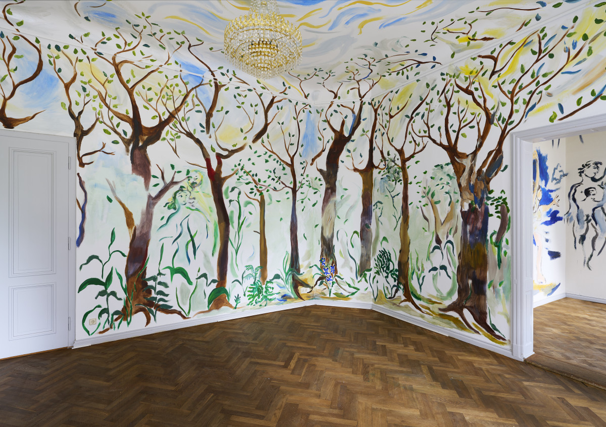 In 1909 the Weimar statesman and aesthete Walther Rathenau acquired and restored the royal palace at Bad Freienwalde outside of Berlin. In 1922 Rathenau was assassinated by far-right extremists. At the time of his murder, he had been Foreign Minister for only three months. Today, the Schloss at Freienwalde is a museum dedicated to the life of Rathenau. To mark 100 years since Rathenau's assassination, urKultur commissioned German-British artist, Sophie von Hellermann to create a site-specific artwork in the Schloss interior. Using her characteristic loose and lively brush strokes, von Hellermann painted directly onto the walls bringing back to life aspects of the original interior. Sophie von Hellermann’s work hints towards both the life once lived there and new ways of bringing historic houses to life. This project is part of Oxford University's Jewish Country House Project and was realised with the support of TORCH and Oxford In Berlin.